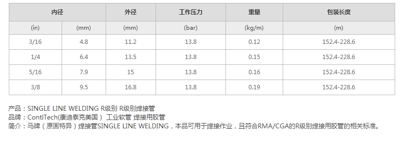 用途:本品可用于焊接作業,且符合RMA/CGA的R級別焊接用膠管